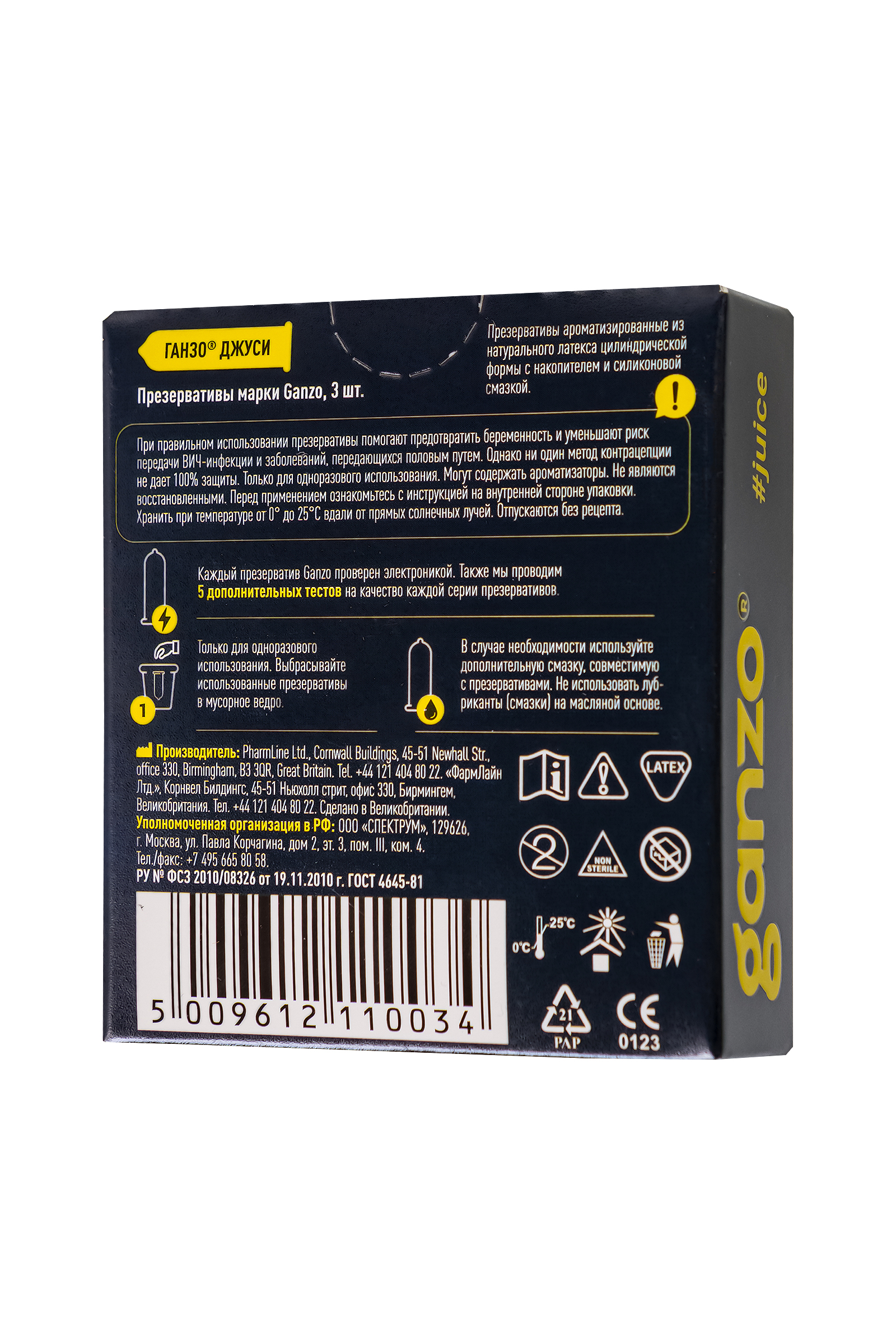 Описание Презервативы Ganzo Juice -это премиальное качество натурального латекса, обильная смазка, комфортное прилегание, различные цвета и ароматы – сделают твой интимный контакт ароматно-цветным путешествием! Желтый – и ты в ванильном облаке, черный – ежевичное настроение, красный – полный тутти-фрутти. Зажгите пламя страсти с презервативы Ganzo Juice! Фруктовые презервативы Ganzo Juice - это яркость, активность и вкусное разнообразие. Хотите разнообразить ваши отношения? Презервативы Ганзо Джус внесут фруктовую нотку. Размер: длина 18 см, диаметр 5,2 см, толщина стенки презерватива 0,06 мм. В упаковке 3 шт.