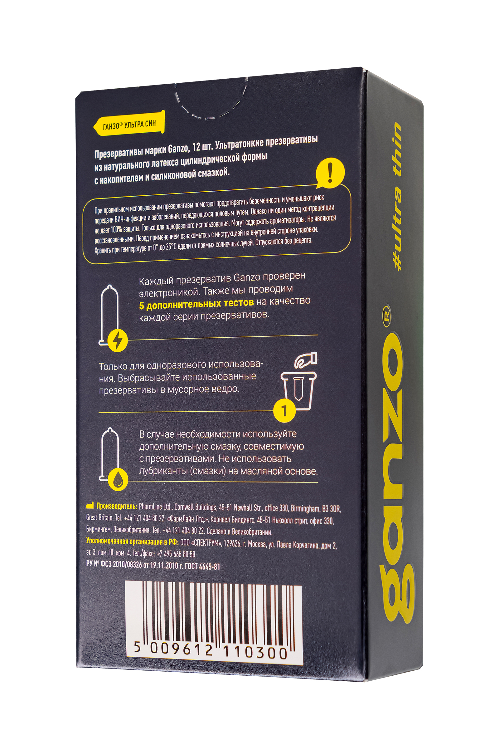 Описание Ультратонкие презервативы Ganzo ultra thin с накопителем в обильной смазке на водной основе. Презервативы сохранят естественность ощущений, не снижая уровня защиты. Не рекомендуется использовать ректально. Материал презерватива: латекс. Количество презервативов - 12 шт.  Размер: длина презерватива 18 см, ширина презерватива 5,2 см, толщина стенки презерватива 0,045 мм.