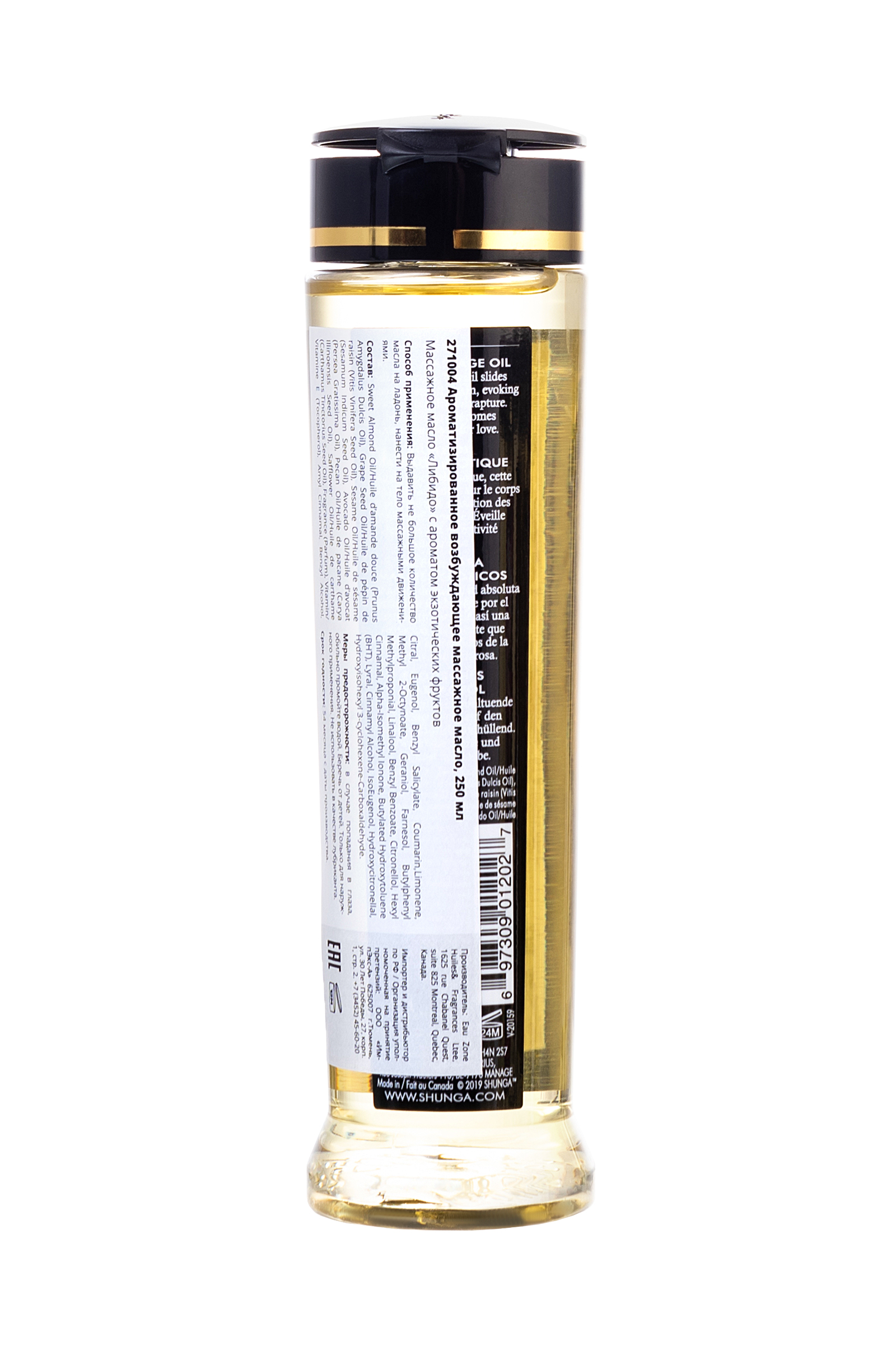 Описание Натуральное массажное масло с упоительными ароматами идеально подходит для взаимного расслабляющего массажа, совмещённого с чувственными ласками. Масло легко скользит по коже, не оставляя жирной пленки. В отличие от большей части средств SHUNGA, ароматизированных вкусовыми ароматами, запах массажному маслу придают эфирные масла и ароматы, что делает его несъедобным. Изготовлено из натуральных масел холодного отжима. Не оставляет жирных пятен. Содержит Витамин Е (антиоксидант). Не закупоривает поры кожи. Не содержит минеральных или животных масел. Применение: налейте небольшое количество на ладонь и разогрейте масло в ладонях, чтобы оно приобрело температуру тела. При желании вы можете нагреть масло в горячей воде для более горячего массажа. Для полного массажа тела. Избегать контакта с интимными зонами. Обратите внимание на то, что данное массажное масло ароматизировано эфирными маслами и отдушками, а, следовательно, не съедобно. Не рекомендуется в качестве персонального лубриканта. Объем: 240мл.