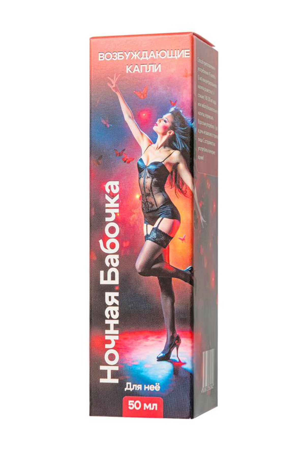 Откройте для себя новые грани наслаждения с возбуждающими каплями для женщин Ночная бабочка. Этот продукт, созданный специально для повышения женского либидо, подарит вам незабываемые моменты страсти и удовольствия. Показания к применению: снижение сексуального влечения и либидо. Сексуальная дисфункция, связанная с недостаточной возбудимостью. Усталость, напряжение и стресс, влияющие на сексуальную активность. Потребность в усилении ощущений и улучшении качества интимной жизни. Профилактика и поддержание здоровья половой системы. Эффективный натуральный состав усиливает кровообращение в органах малого таза и благоприятно влияет на эпицентр женского удовольствия. Позвольте себе наслаждаться яркими и страстными моментами с Ночной бабочкой – каплями, которые пробуждают желание и усиливают удовольствие. L-аргинин: Незаменимая аминокислота, увеличивающая уровень окиси азота в теле, что способствует повышению либидо и сексуальной активности. Объем: 50 мл.
