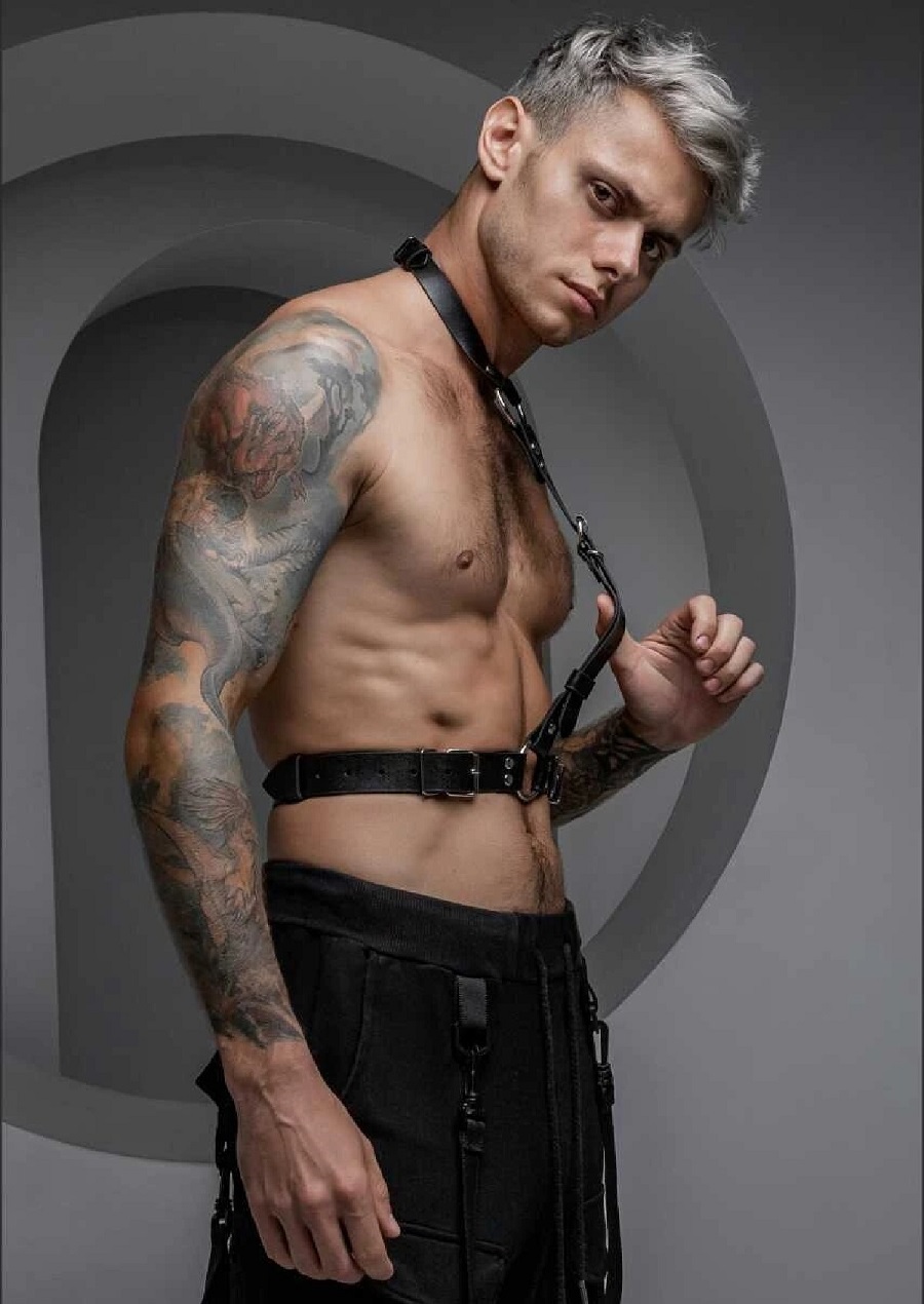 Портупея Mars - олицетворение бога войны. Дерзкий, грубый, беспощадный и сильный. В современном мире, можно предположить, что на нем красовалась бы портупея из натуральной кожи. Смелым дизайном, идеально выверенными ремнями и металлическими креплениями, она всем своим видом как бы намекала о всемогущем характере владельца. Дерзкое кожаное изделие решительно настроено сделать образ более властным и желанным. Ведь подчеркнуть всю мужскую первородную страсть это - чувственно. С этой задачей готова справиться портупея Марс. Данная модель портупеи имеет съемный чокер, который можно использовать как отдельный самостоятельный аксессуар. Ширина чокера 2 см, ширина пояса 3 см, ширина элемента соединяющего чокер и пояс - 2,5 см. Размер L/XL. Цвет черный.
