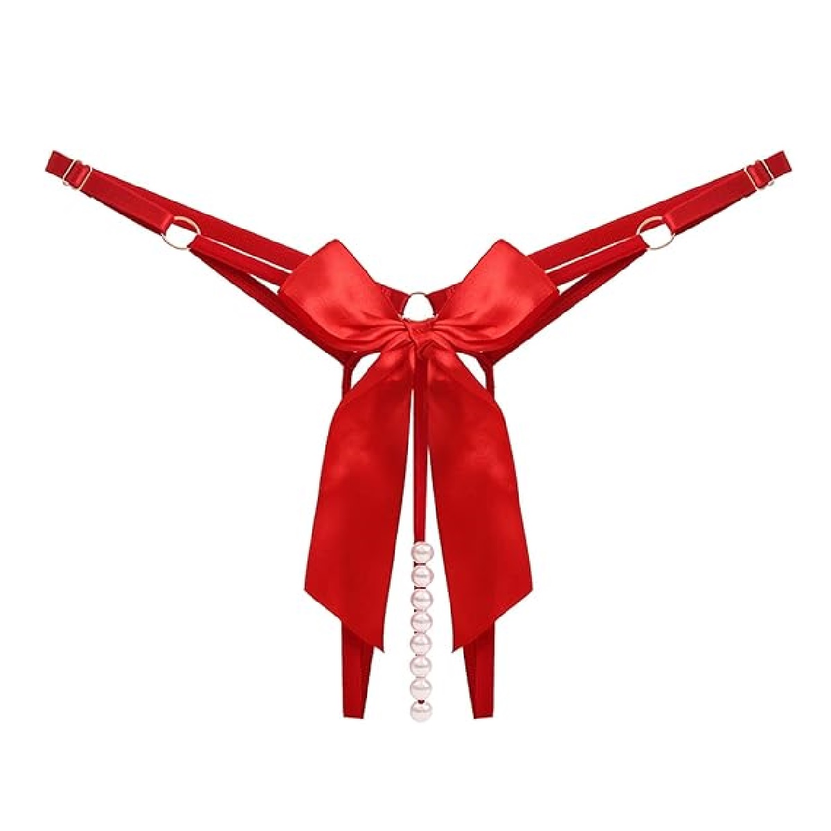 Стринги женские с доступом и бусами регулируемые по размеру красный