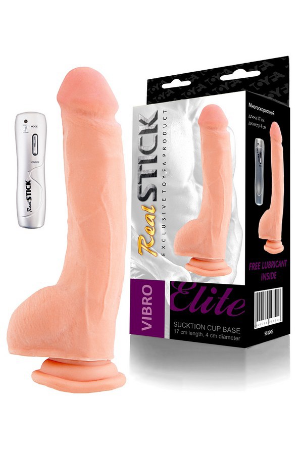 Вибратор 7 режимов вибрации на присоске телесный RealStick 24 см