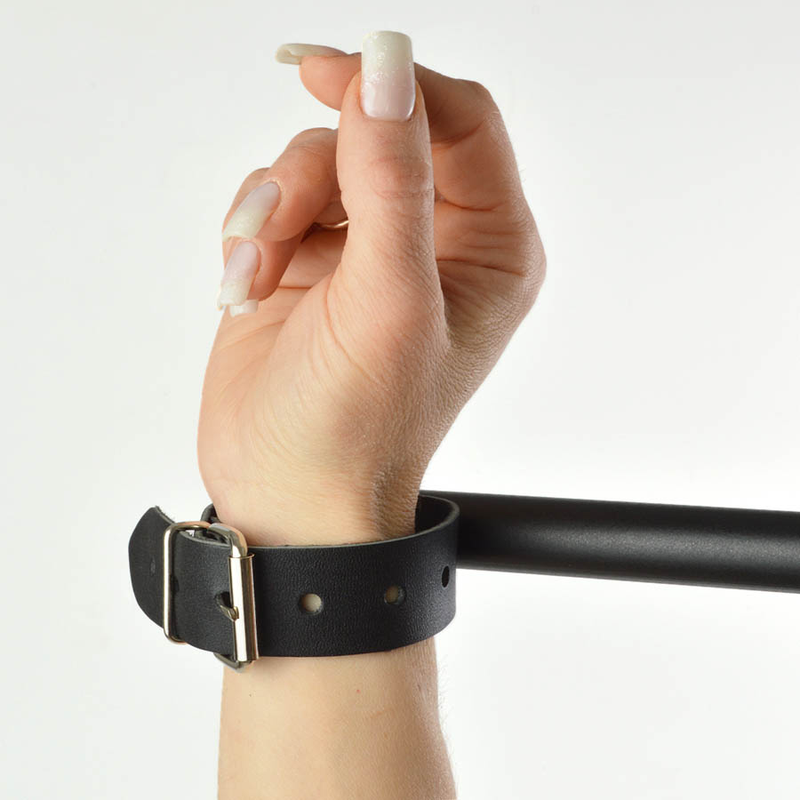 Распорка незаменимый аксессуар, который поможет ограничить подвижность и зафиксировать Вас или Вашего партнера в нужном положении для достижения максимального удовольствия. Девайс состоит из жесткой основы, которая покрыта натуральной кожей. На основании располагаются: на концах наручники, посредине ошейник из натуральной кожи. Никелированная фурнитура обеспечивает более долгий срок службы изделия и сохраняет декоративные свойства Длина распорки 75 см. Цвет черный.