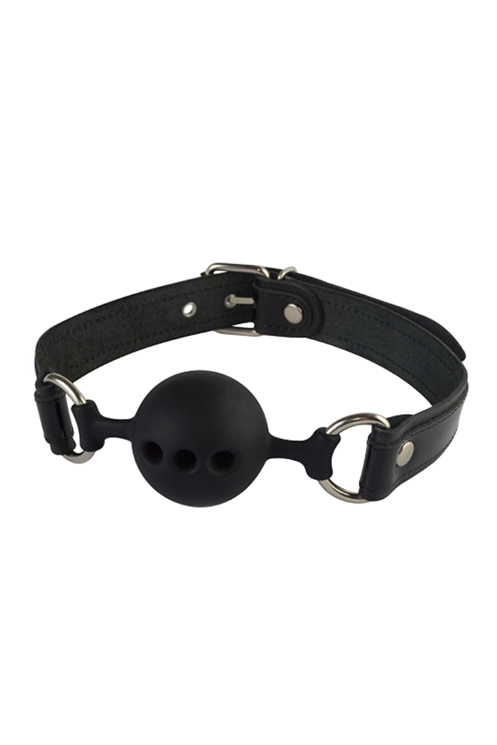 Кляп с оригинальным кожаным ремешком и лаковыми вставками черного цвета. Сам кляп-шар изготовлен из силикона, приятного на ощупь, со специальными отверстиями, пропускающими воздух. Ремешок с пряжкой позволяет подогнать изделие по желаемому размеру. Размер: длина 58 см, ширина ремешка 2,5 см, диаметр 4,4 см. Цвет черный.