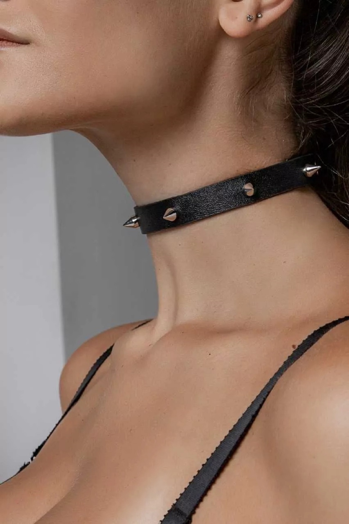 Чокер из натуральной кожи черного цвета украшенный семью шипами. Этот эротический аксессуар станет отличным подарком для взрослых. Застёгивается он при помощи надёжных стальных кнопок. Чокер отлично сидит на шее и подходит для интимных ролевых игр влюблённых пар. Размер: ширина чокера 1,4 см, длина 40 см. Чокер изготовлен из натуральной кожи. Цвет черный.