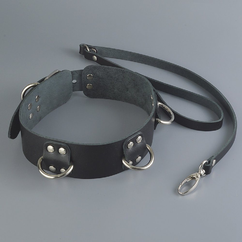 Кожаный ошейник Sitabella – это строгий и лаконичный аксессуар BDSM, способный вызвать эмоционально-сексуальное возбуждение, лишь своим нахождением на теле секс-партнёра. Чёрный ошейник из толстой натуральной кожи, ширина составляет 4 см. Накладка с клепками и тремя полукольцами является брутальным декором и используется для присоединения поводка и наручников к ошейнику.Поводок в виде кожаной ленты с карабином, длина 58 см. Размер изделия регулируется металлической пряжкой. Размер: общая длина ошейника 52 см, ширина 4 см. Цвет черный.