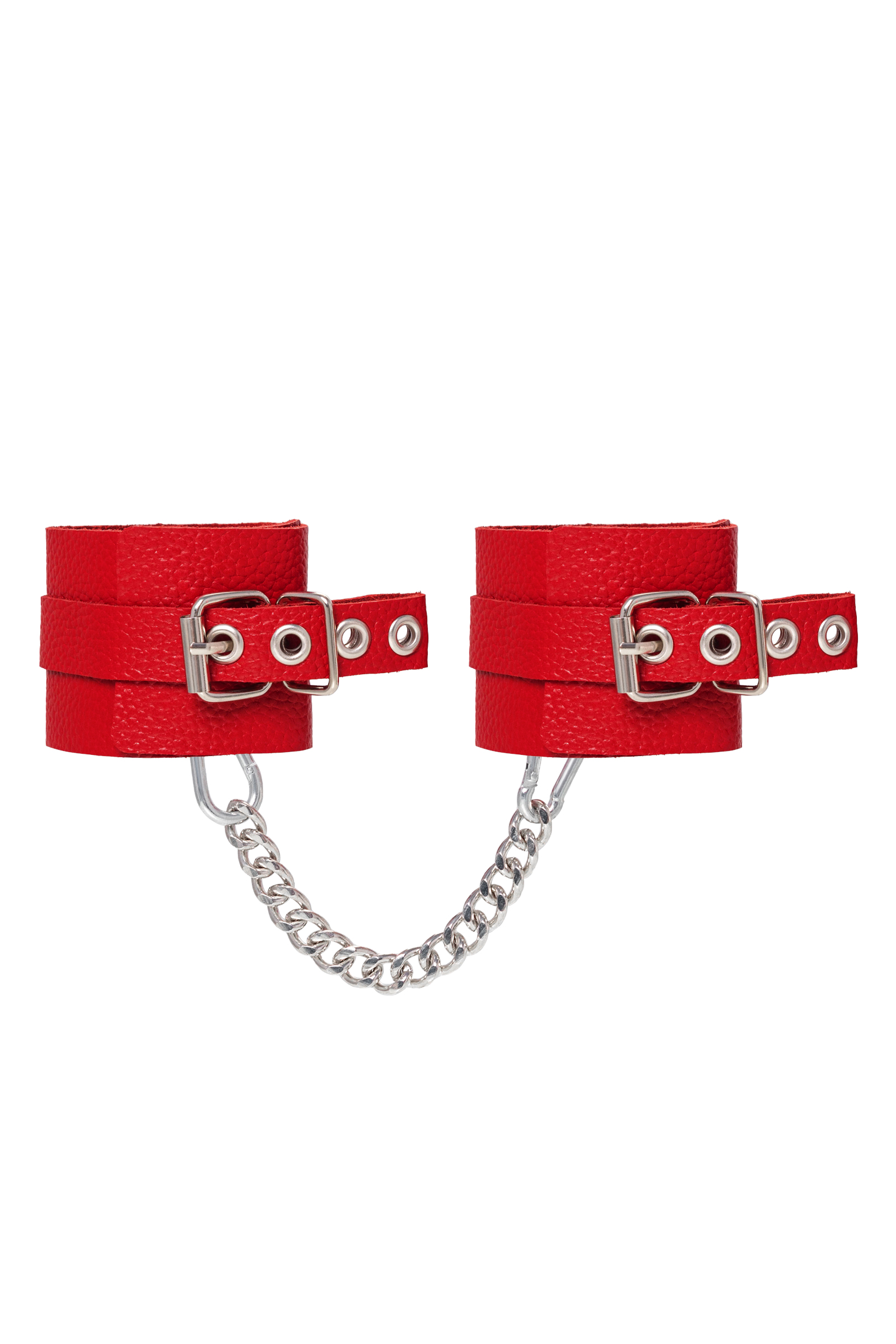 Мягкие оковы. Сексуальный атрибут изготовлен из безопасной и натуральной кожи. Насыщенно белый цвет и терпкий аромат материала повышают градус возбуждения в процессе ролевых игр. Манжеты и ремешки девайся очень тактильно приятные. Они не мнутся, не тянутся и обладают повышенной износостойкостью. Вся фурнитура высокого качества. На тонких ремешках имеются отверстия с люверсами, для подбора нужного обхвата. Благодаря стальной застежке аксессуар легко застегивается и расстегивается. Между собой оковы присоединяются с помощью карабинов и короткой цепочки. При необходимости ее можно снять и заменить на более длинный вариант. Используется для того, чтобы обездвижить партнера и зафиксировать ноги в необходимом положении. Подходит как маститым знатокам БДСМ-культуры, так и начинающим парам. Материал: натуральная кожа. Ручная работа. Износостойкий, тактильно приятный материал. Надежная высококачественная фурнитура. Универсальный размер. Длина манжета 25 см.