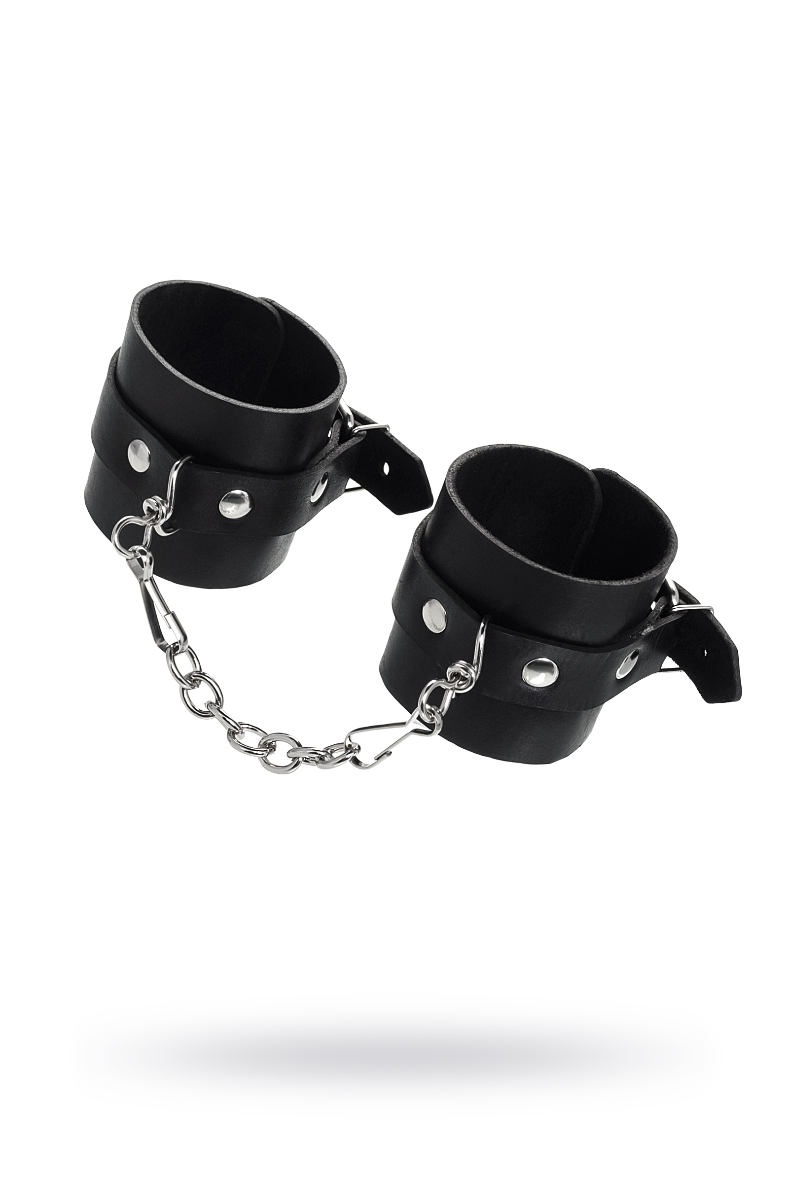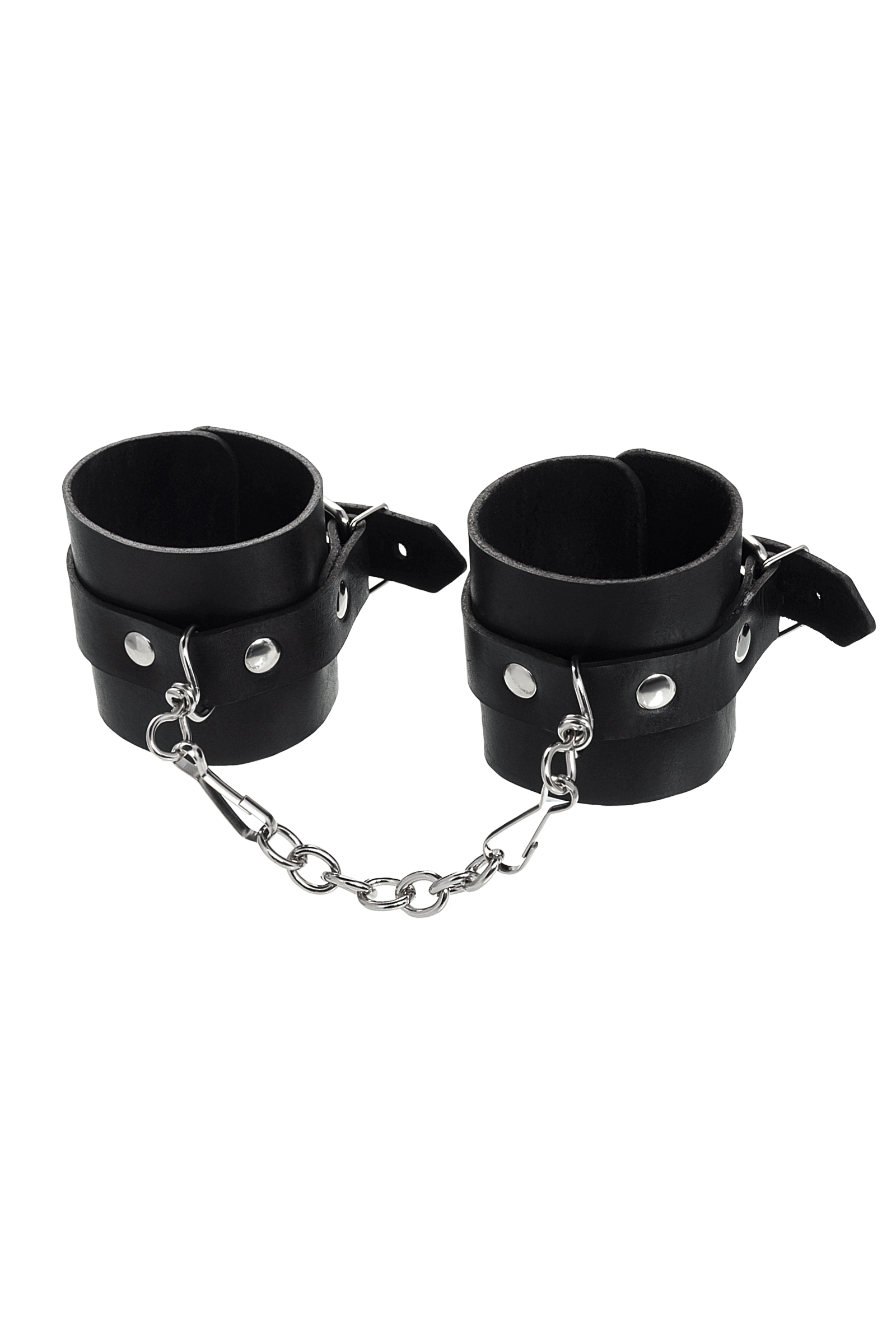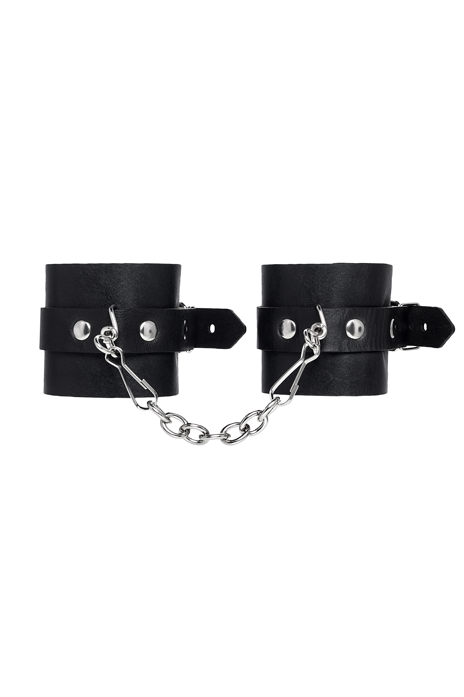 Однослойные кожаные наручники могут стать стильным аксессуаром на «свободных» руках, но могут послужить вашим целям и фантазиям по своему прямому назначению. Наличие двух карабинов и колец позволяет использовать изделие как раздельно – аксессуар-манжеты, так и как наручники для фиксации. К широким металлическим кольцам также можно присоединить и другие аксессуары при помощи карабинов. Благодаря универсальному размеру наручники могут использоваться и мужчинами, и женщинами. Размер легко регулируется с помощью металлических пряжек, органично вписывающихся в общий стиль. Материал: натуральная кожа. Цвет черный. Размер: ширина манжет 5,5 см, длина манжет 25 см, длина сцепки 13 см.
