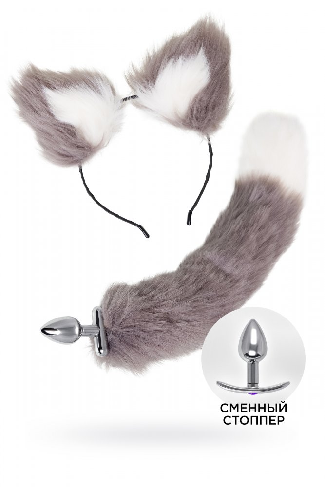 Анальная втулка с хвостом и ушки Toyfa Metal серебристая 44,4 см
