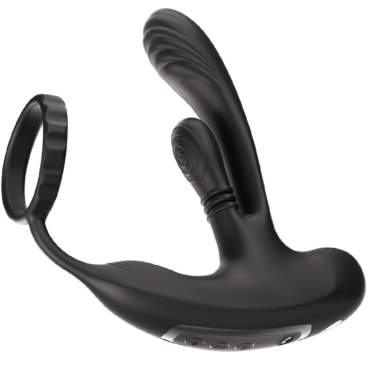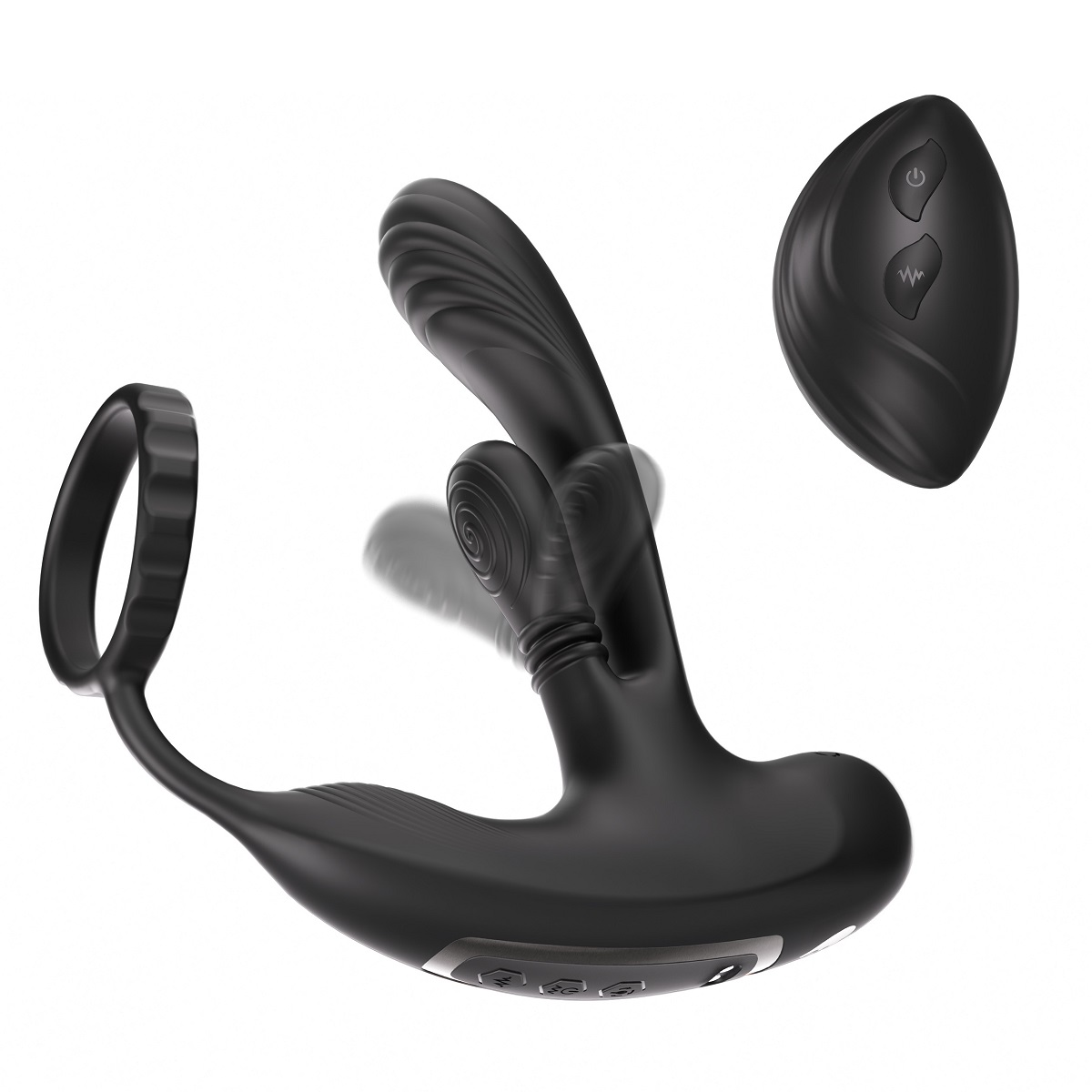 Hero – инновационный массажер простаты, оснащенный новейшей технологией массажа на 360 градусов. Специальный текстурированный язычок, оснащенный высокоточным мотором, совершает плавные круговые вращения, тщательно стимулируя все ключевые зоны точки P для глубокого и интенсивного воздействия. Также стимулятор оборудован тремя мощными вибрационными моторами: на головке стимулятора, на язычке вращения и в области промежности. Кроме того, Hero имеет эрекционное кольцо, которое не только усиливает эрекцию, но и помогает замедлить процесс эякуляции, продлевая удовольствие. В комплект входит пульт дистанционного управления, позволяющий управлять всеми функциями устройства на расстоянии до 10 метров. Это обеспечивает удобство и полный контроль над процессом. Размер: длина ствола 13 см, диаметр 2,8 см, длина язычка 5 см, диаметр 2,5 см, длина стимулятора прмежности 16 см, диаметр кольца 5,5 см. Цвет черный.