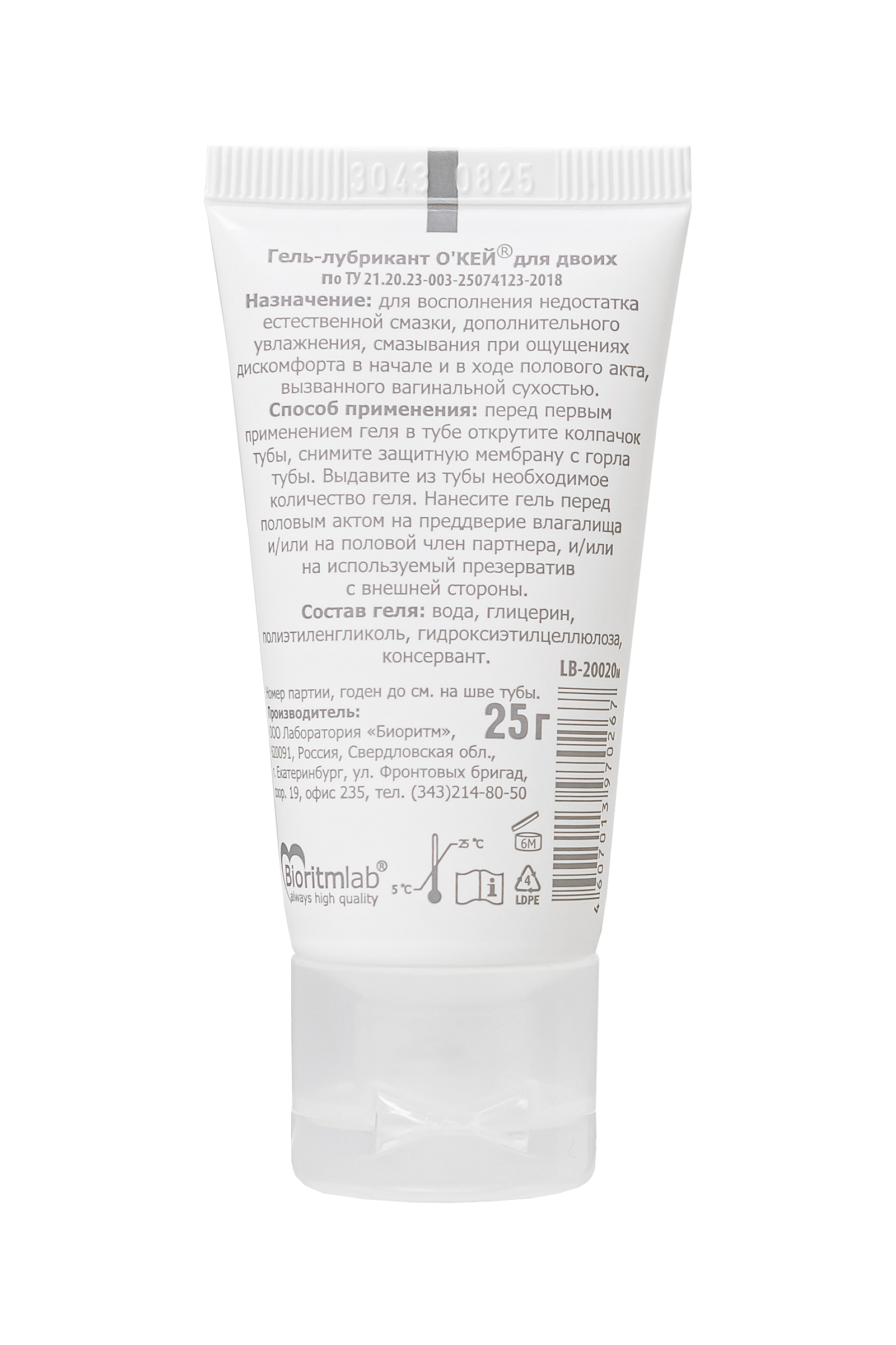 Описание Превратите ваши интимные моменты в настоящее удовольствие с гелем-лубрикантом на водной основе Окей для двоих. Ведь недостаток естественной смазки не должен быть помехой на пути к наслаждению. Этот классический лубрикант на водной основе создан, чтобы сделать ваш секс комфортным и приятным.   Интенсивное увлажнение: С этим лубрикантом вы забудете о неприятных ощущениях благодаря его высокой степени увлажнения. Долговременное скольжение: надежное скольжение на протяжении всего полового акта обеспечивает комфорт и удовлетворение. Одобрено гинекологами: разработан с учетом здоровья и безопасности. Подходит для большинства людей благодаря нейтральной формуле – не имеет запаха, цвета, вкуса.   Не пачкает: смазка легко впитывается, не оставляя следов и липкости на вашей одежде. Совместимость с презервативами и секс-игрушками: Никаких ограничений в ваших интимных предпочтениях. Объем: 25 грамм.