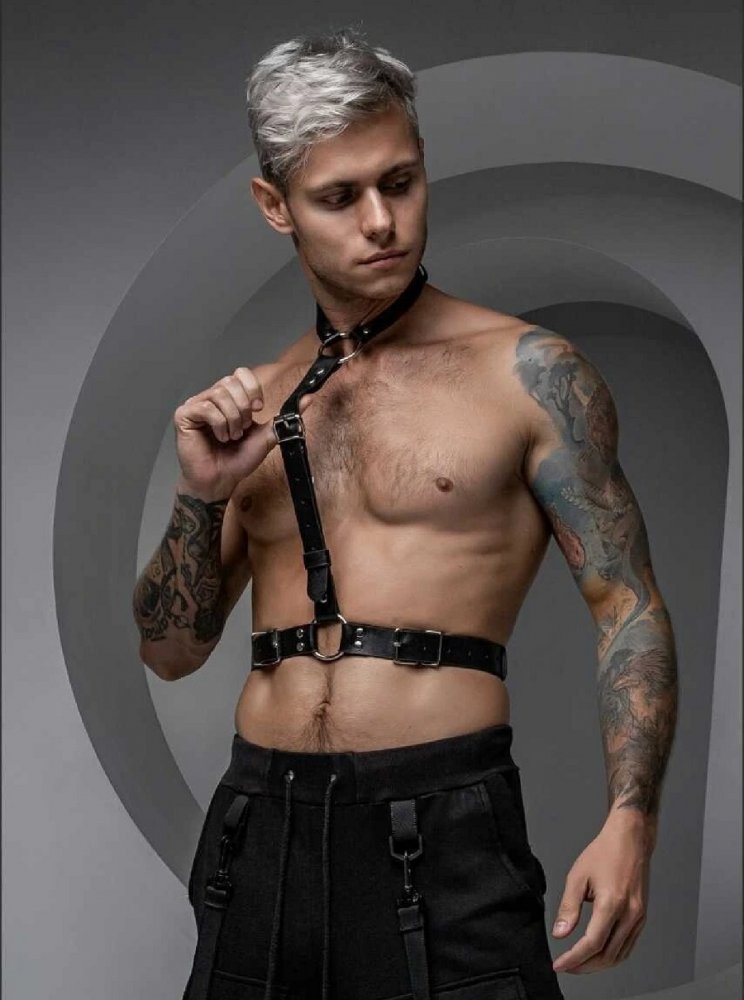 Портупея Mars - олицетворение бога войны. Дерзкий, грубый, беспощадный и сильный. В современном мире, можно предположить, что на нем красовалась бы портупея из натуральной кожи. Смелым дизайном, идеально выверенными ремнями и металлическими креплениями, она всем своим видом как бы намекала о всемогущем характере владельца. Дерзкое кожаное изделие решительно настроено сделать образ более властным и желанным. Ведь подчеркнуть всю мужскую первородную страсть это - чувственно. С этой задачей готова справиться портупея Марс. Данная модель портупеи имеет съемный чокер, который можно использовать как отдельный самостоятельный аксессуар. Ширина чокера 2 см, ширина пояса 3 см, ширина элемента соединяющего чокер и пояс - 2,5 см. Размер L/XL. Цвет черный.