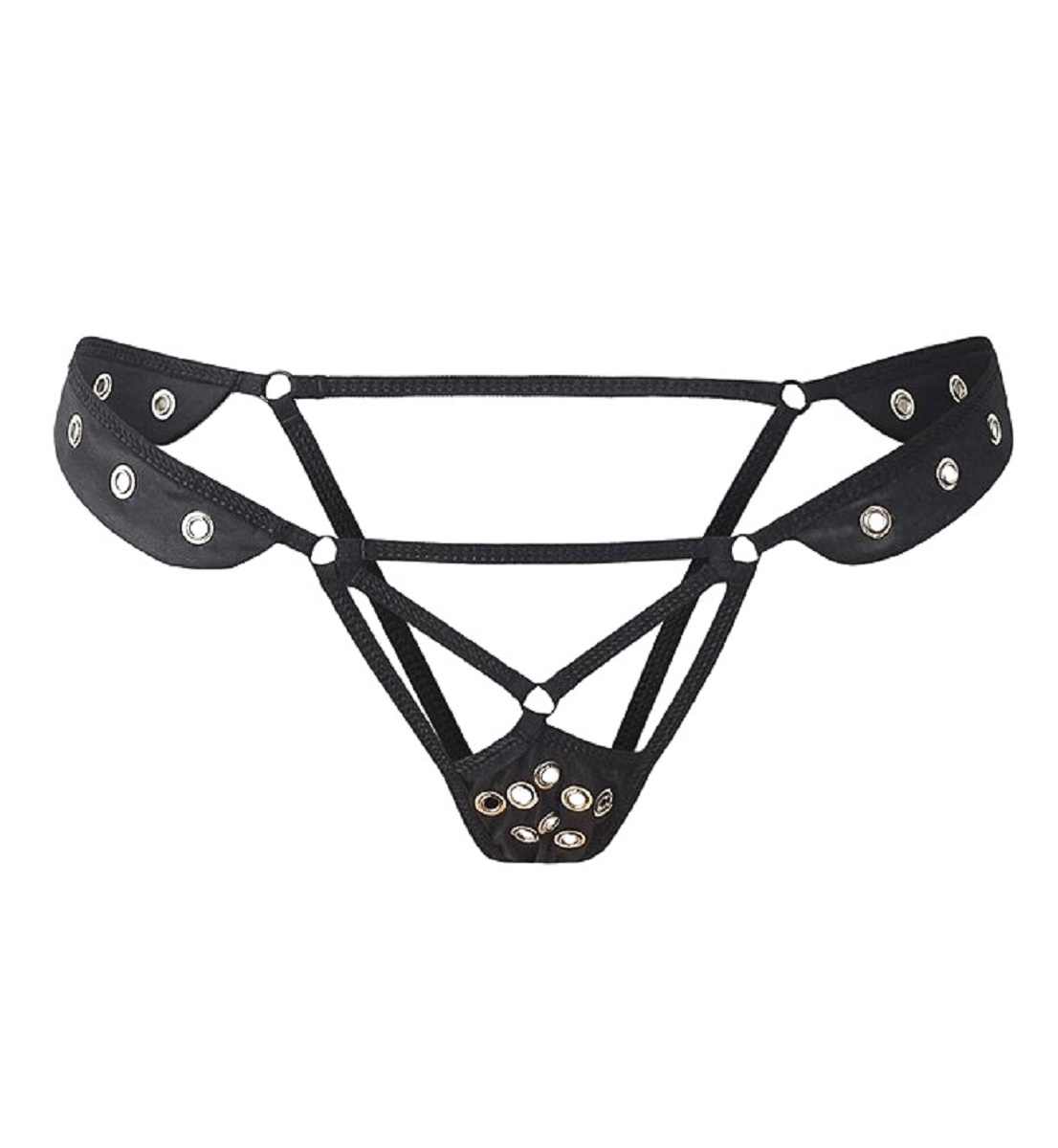 Трусики с доступом из черных лент с металлическими заклепками и провокационными вырезами. Легкая БДСМ-нотка добавляет модели пикантности. Поиграй с ним в подчинение, заставь поклоняться своей сексуальности. Впрочем, выбора у него не будет – женщине в белье от коллекции Easytolove невозможно отказать. Цвет: черный. Размер: 46-48 (M/L).