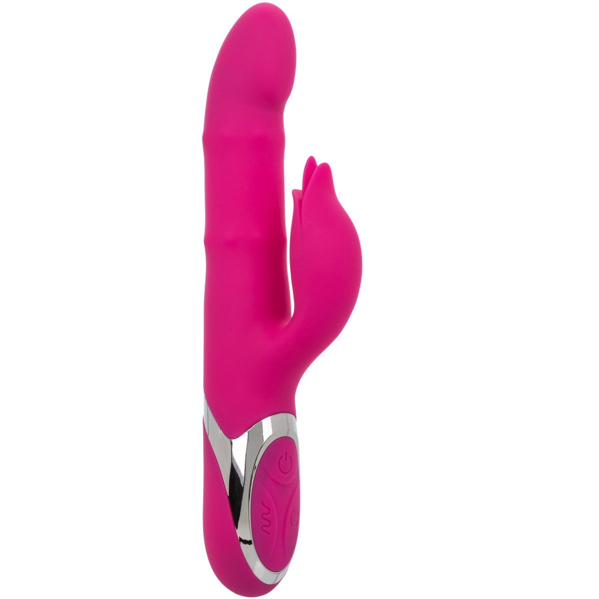 Enchanted Embrace – перезаряжаемый вибромассажер с клиторальным отростком в форме бутона Изготовлен из бесшовного, гипоаллергенного, безопасного для тела, не содержащего фталатов силикона премиум-класса. Два мощных мотора обеспечивает 12 интенсивных режимов вибрации и 4 функции пенетрации бусинами по всему стволу. Девайс снабжен высокотехнологичным чипом памяти, который позволяет запомнить последний режим выбранной вибрации и включается именно с него, не требуя снова искать предпочитаемую функцию. Вибромассажер заряжается через USB и может быть подключен практически в любом месте, просто подсоедините идущий в комплекте шнур к совместимому порту компьютера или USB-адаптера (приобретается отдельно), а противоположный конец со штекером к игрушке. Размер: общая длина 24 см, длина рабочей части 12,75 см, длина клиторального отростка 7,5 см, диаметр 3,75 см. Цвет фиолетовый. Для более комфортного использования рекомендуем приобрести смазку на водной основе и очищающий спрей Clear Toy 100 мл для обработки изделия.
