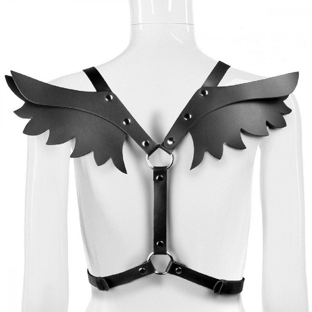 Роскошная портупея с крыльями придаст БДСМ-образу сексуальности и эпатажа. Она поможет перевоплотиться во властную госпожу или кроткую наложницу, отлично подойдёт для тематической вечеринки. Интимный аксессуар великолепно смотрится на обнажённом теле или в тандеме с эротичным нижним бельём. Фигурные крылья добавляют пикантности, а металлические детали - экстравагантности. Портупея фиксируется на плечах и талии. Ремни с застёжками позволяют регулировать размер изделия, утягивать или ослаблять натяжение. Мягкая внутренняя поверхность интимного аксессуара препятствует натиранию кожи. До и после применения изделие необходимо обрабатывать очищающим спреем с антимикробным эффектом Clear Toy. Цвет черный.