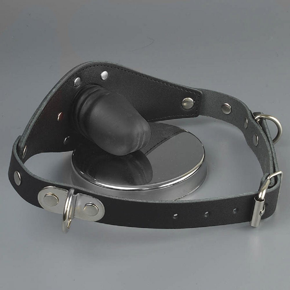 Кожаный кляп – это один из символов покорности, так как он лишает подчиняющегося, возможности говорить и создаёт ощущение полной беспомощности. Кляп представляет собой упругий фаллос, из натурального латекса, который размещён на кожаном щите с регулирующимися ремешками. Полукольца, находящиеся по бокам, предназначены для крепления к ним повода или бандажа. Фурнитура, используемая в изготовлении кляпа, никелирована. Размер изделия регулируется пряжкой. Кляп-фаллос может быть красного или черного цвета, на усмотрение производителя.