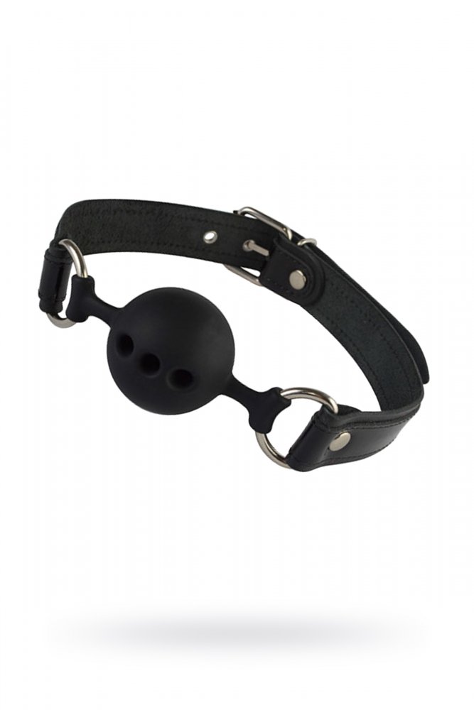 Кляп с оригинальным кожаным ремешком и лаковыми вставками черного цвета. Сам кляп-шар изготовлен из силикона, приятного на ощупь, со специальными отверстиями, пропускающими воздух. Ремешок с пряжкой позволяет подогнать изделие по желаемому размеру. Размер: длина 58 см, ширина ремешка 2,5 см, диаметр 4,4 см. Цвет черный.