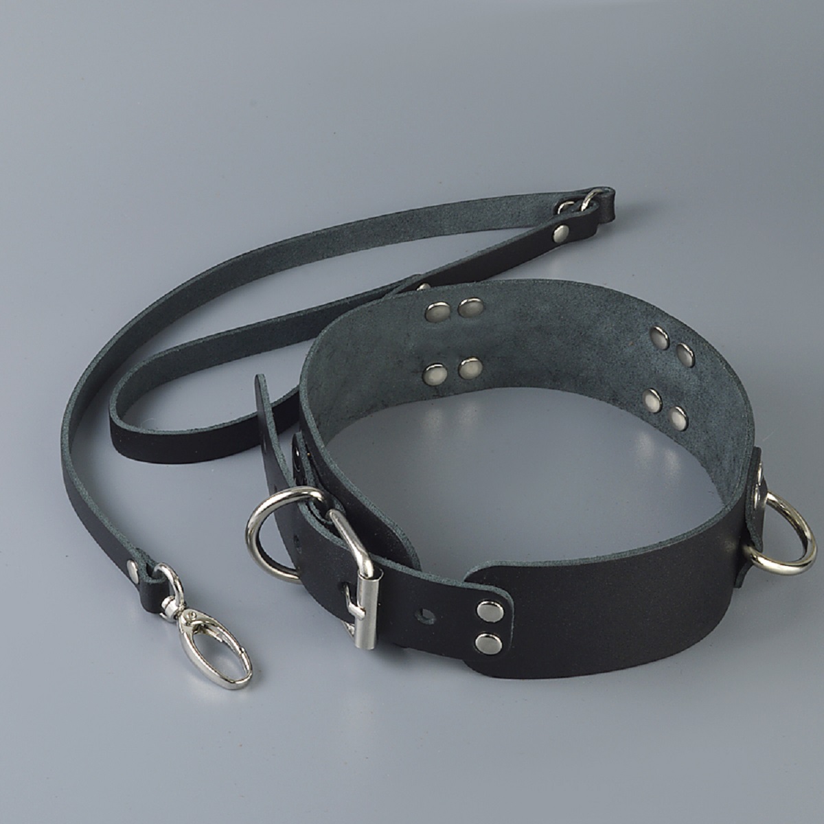 Кожаный ошейник Sitabella – это строгий и лаконичный аксессуар BDSM, способный вызвать эмоционально-сексуальное возбуждение, лишь своим нахождением на теле секс-партнёра. Чёрный ошейник из толстой натуральной кожи, ширина составляет 4 см. Накладка с клепками и тремя полукольцами является брутальным декором и используется для присоединения поводка и наручников к ошейнику.Поводок в виде кожаной ленты с карабином, длина 58 см. Размер изделия регулируется металлической пряжкой. Размер: общая длина ошейника 52 см, ширина 4 см. Цвет черный.