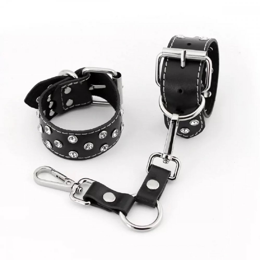 Подарите себе и своему партнеру уникальный опыт! Эти БДСМ игрушки идеально подойдут для тех, кто хочет исследовать мир страсти и наслаждения. Декоративная строчка по контуру и блестящие стразы придают изделию элегантный вид, а стальная фурнитура с никелированным покрытием гарантирует надежность и безопасность в использовании.Изготовленные из натуральной кожи толщиной 2.2 мм, наручники обеспечивают прочность и долговечность. Размер можно легко регулировать от 14 до 20 см, что позволяет добиться идеальной посадки практически на любое запястье. Эти эротические наручники не только для секса, но и для создания уникальной атмосферы в ваших отношениях. Их можно прицепить к кровати, за спинку стульев или использовать в сочетании с портупеей и ошейником. Благодаря этому вы сможете экспериментировать с различными позами и наслаждаться новыми эмоциями в интимной жизни. Размер: ширина наручников 3 см, длина наручников 25 см. Наручники изготовлены из натуральной кожи. Цвет черный.