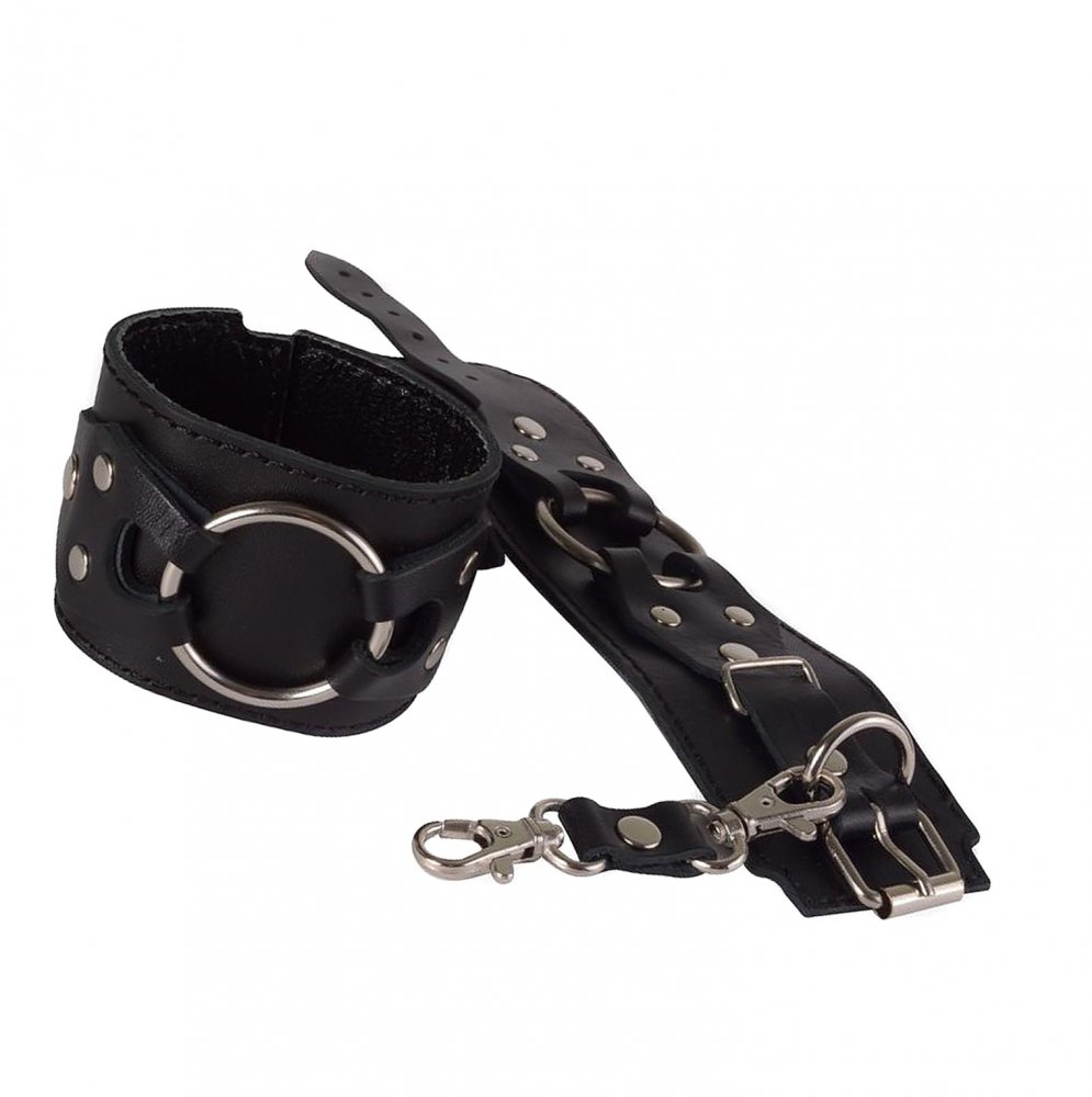 Описание Черные наручники из натуральной кожи от Ситабелла помогут ограничить движения секс-партнёра, достаточно лишь одеть на запястья комфортный, но прочный девайс. Лаконичные, но при этом красивые наручники подойдут, как для женщин, так и для мужчин, т.к. размер легко регулируется при помощи металлической пряжки. Готические фигурные накладки, удерживающие большое металлическое кольцо, придают наручникам агрессивной сексуальности и роскоши. Соединяются наручники при помощи небольших карабинов, скреплённых кожаной перемычкой. Для комфортного использования внутренняя часть наручников выполнена из бархатистой велюровой кожи. Вся металлическая фурнитура имеет никелевое покрытие. Размер: общая длина около 27 см, ширина 5,5 см.