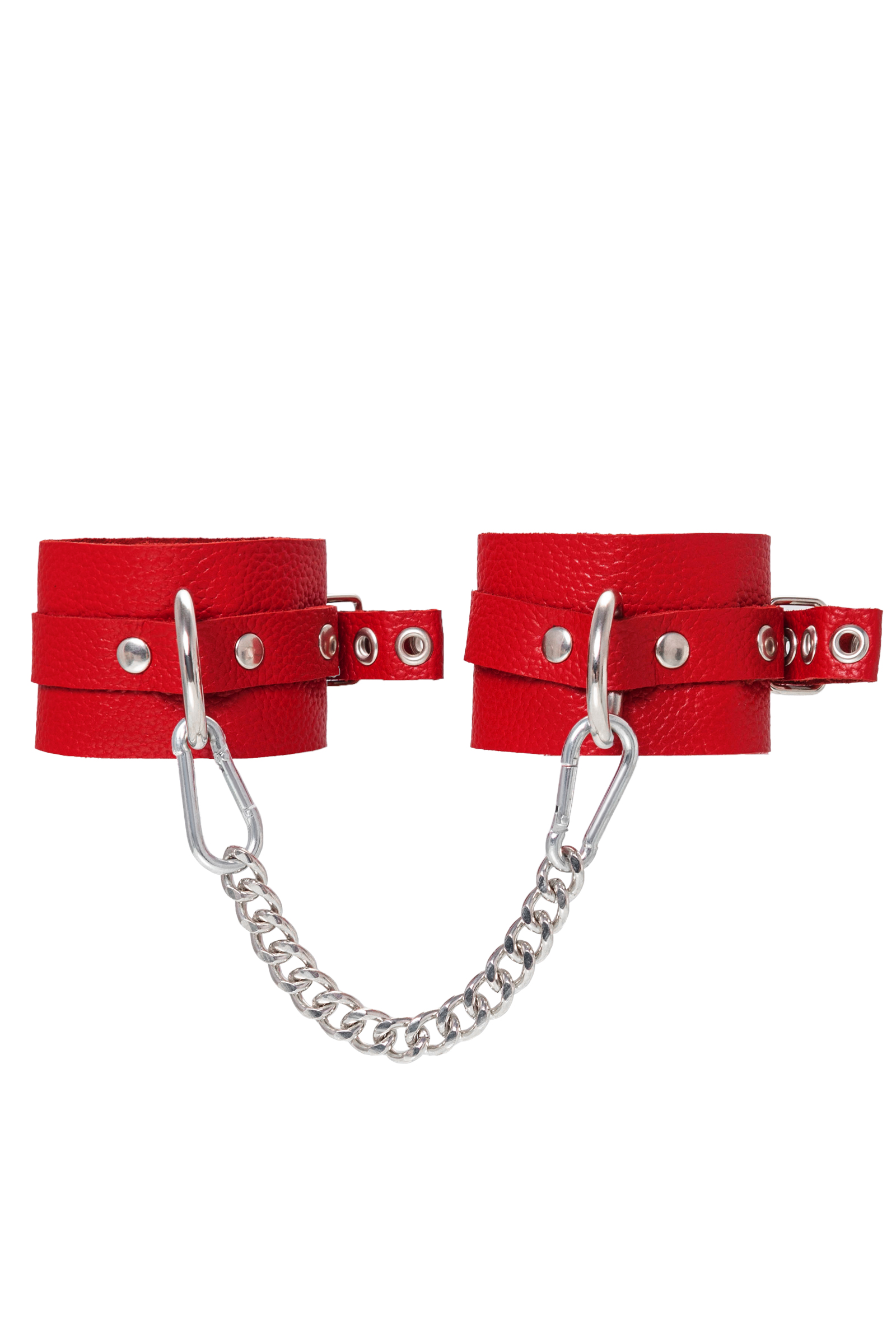 Мягкие оковы. Сексуальный атрибут изготовлен из безопасной и натуральной кожи. Насыщенно белый цвет и терпкий аромат материала повышают градус возбуждения в процессе ролевых игр. Манжеты и ремешки девайся очень тактильно приятные. Они не мнутся, не тянутся и обладают повышенной износостойкостью. Вся фурнитура высокого качества. На тонких ремешках имеются отверстия с люверсами, для подбора нужного обхвата. Благодаря стальной застежке аксессуар легко застегивается и расстегивается. Между собой оковы присоединяются с помощью карабинов и короткой цепочки. При необходимости ее можно снять и заменить на более длинный вариант. Используется для того, чтобы обездвижить партнера и зафиксировать ноги в необходимом положении. Подходит как маститым знатокам БДСМ-культуры, так и начинающим парам. Материал: натуральная кожа. Ручная работа. Износостойкий, тактильно приятный материал. Надежная высококачественная фурнитура. Универсальный размер. Длина манжета 25 см.
