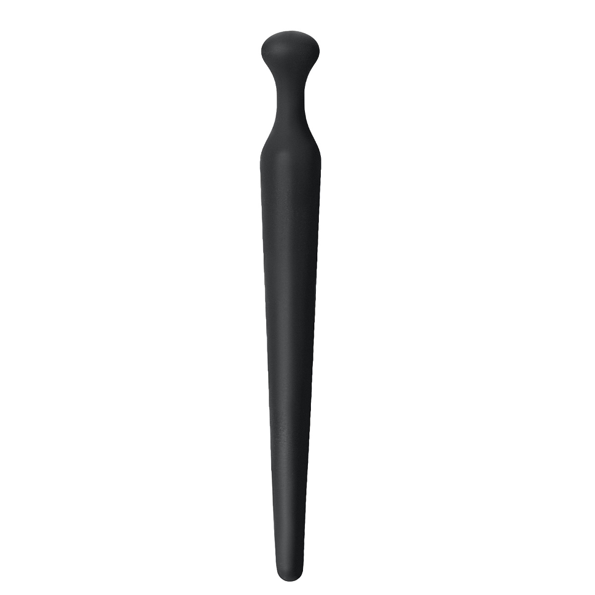 Небольшой силиконовый уретральный плаг поможет открыть новые грани удовольствия. С ним можно стимулировать себя снаружи и изнутри одновременно. Простая форма и гладкая поверхность идеальны для комфортного изучения своих ощущений и новых форм наслаждения. Размер: общая длина 10 см, глубина проникновения 8 см, диаметр 0,3 - 0,8 см. Цвет: черный.