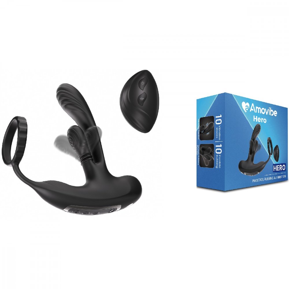 Hero – инновационный массажер простаты, оснащенный новейшей технологией массажа на 360 градусов. Специальный текстурированный язычок, оснащенный высокоточным мотором, совершает плавные круговые вращения, тщательно стимулируя все ключевые зоны точки P для глубокого и интенсивного воздействия. Также стимулятор оборудован тремя мощными вибрационными моторами: на головке стимулятора, на язычке вращения и в области промежности. Кроме того, Hero имеет эрекционное кольцо, которое не только усиливает эрекцию, но и помогает замедлить процесс эякуляции, продлевая удовольствие. В комплект входит пульт дистанционного управления, позволяющий управлять всеми функциями устройства на расстоянии до 10 метров. Это обеспечивает удобство и полный контроль над процессом. Размер: длина ствола 13 см, диаметр 2,8 см, длина язычка 5 см, диаметр 2,5 см, длина стимулятора прмежности 16 см, диаметр кольца 5,5 см. Цвет черный.