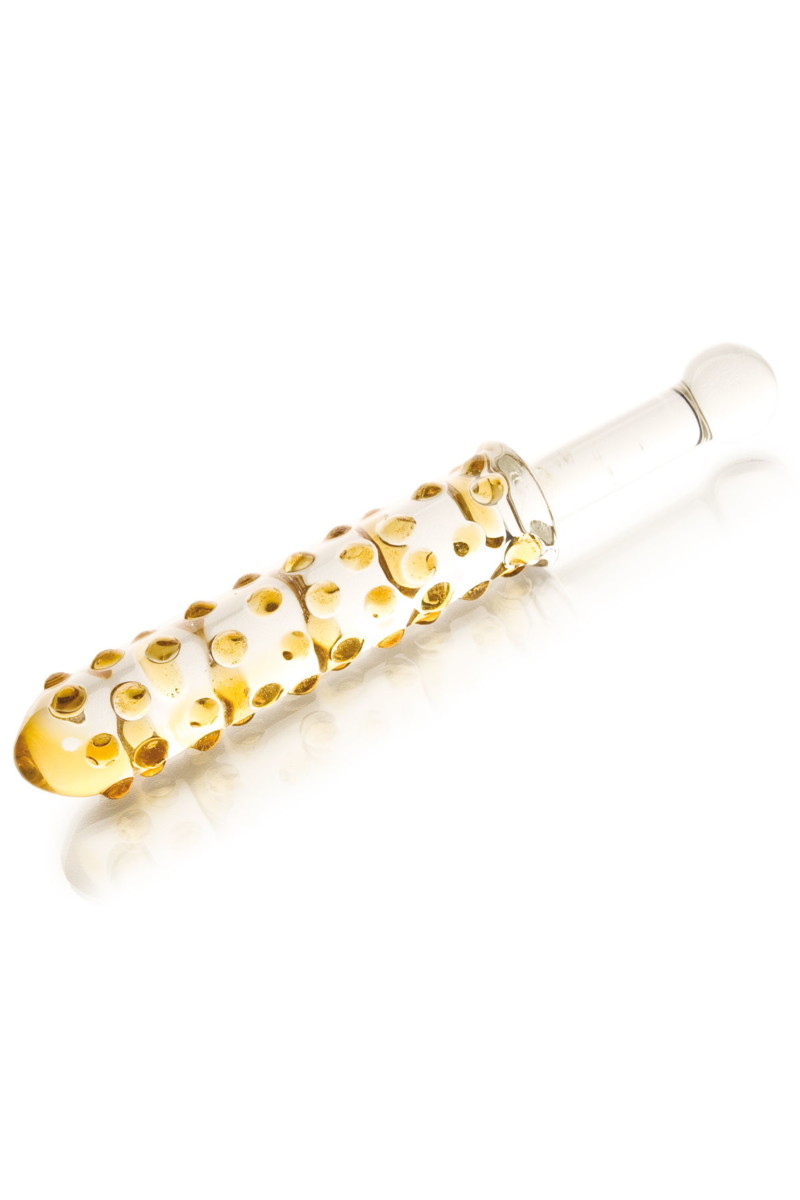 Двухголовый фаллос из прозрачного стекла ручной работы с большими выпуклыми массажными точками. Анально-вагинальная стимуляция. Рельеф для усиленного воздействия.В словарном запасе этого аксессуара лишь: умопомрачительное наслаждение и фееричный оргазм. Ещё бы! Большая головка, идеально твёрдая поверхность, массажные бусины на стволе фаллоса — всё это заставляет трепетать каждую частичку тела, когда фаллоимитатор оказывается внутри. А уникальный материал, из которого изготовлен фаллос, готов усилить этот трепет! Ведь закалённое стекло можно нагревать или охлаждать - невероятные ощущения гарантированы! Размер: длина: 23,5 см, диаметр: 1,7- 3,1 см.Для более комфортного использования рекомендуем приобрести смазку на силиконовой основе и очищающий спрей Clear Toy 100 мл для обработки изделия