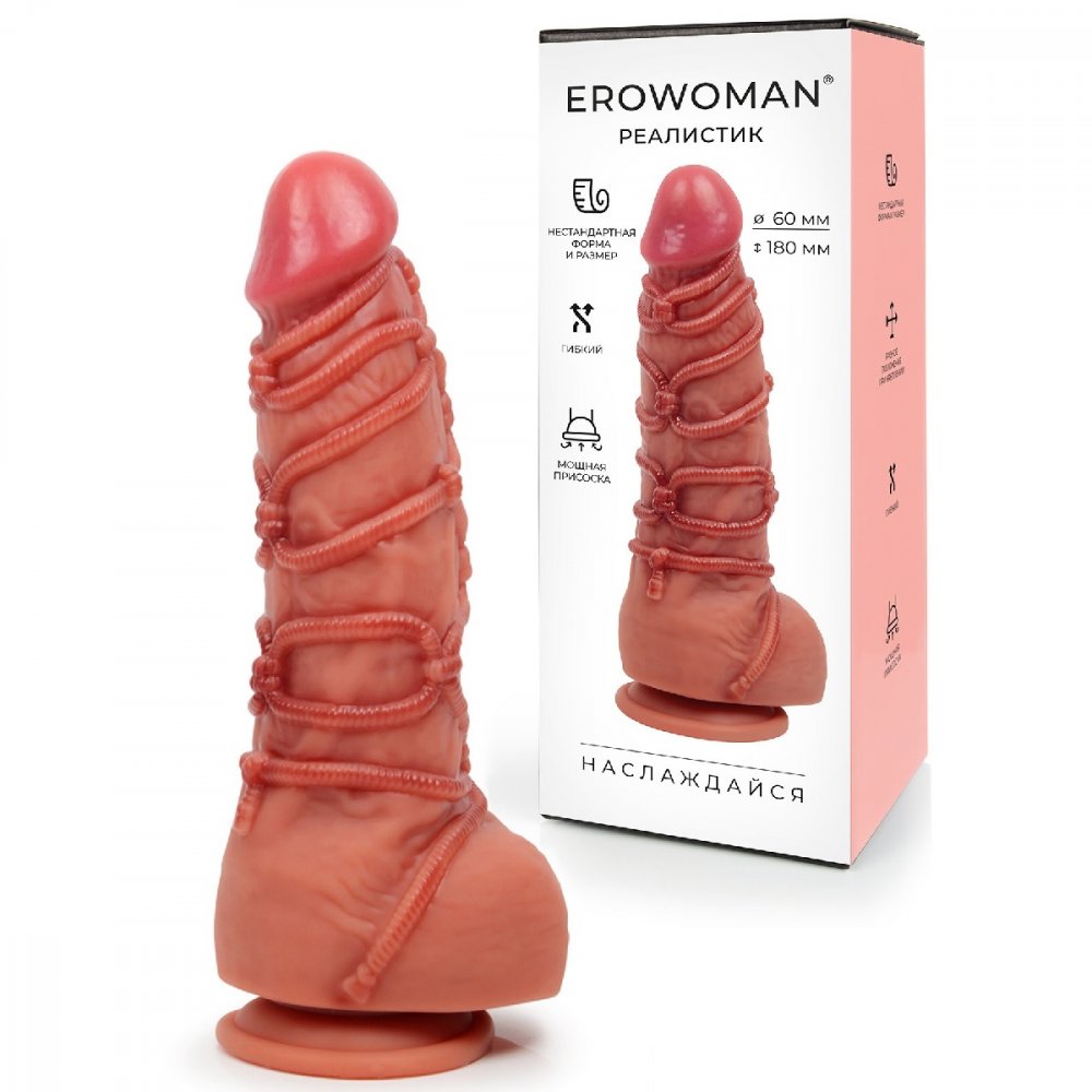 Роскошный фаллоимитатор на присоске для любителей нестандартных размеров и острых сексуальных ощущений. Доведёт до пика наслаждения во время индивидуального использования или разнообразит занятия любовью в паре. Ярко выраженные головка и мошонка, хорошо прорисованные складочки и венки, естественный оттенок поверхности придают изделию максимальной реалистичности. Объёмный ствол дарит чувство наполненности. Имитация верёвки, обмотанной вокруг пениса, усиливает возбуждение. Присоска прочно удерживает изделие на ровной поверхности. Ствол может гнуться в разные стороны, что позволяет использовать секс-игрушку в разных позах. Фаллоимитатор отличается высоким качеством исполнения. Прост в использовании и уходе. Размер: общая длина 25 см, рабочая длина 18 см, диаметр 6 см. Для более комфортного использования рекомендуем приобрести смазку на водной основе и очищающий спрей Clear Toy 100 мл для обработки изделия.
